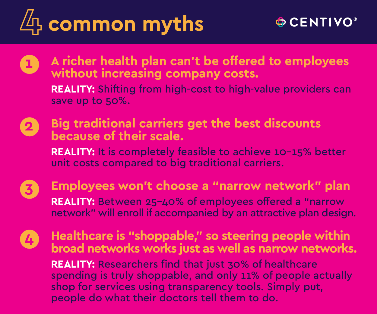MYTH 4: Healthcare is “shoppable,” so steering people within broad networks works just as well as narrow networks.