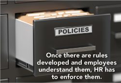 The enforcement step is what the workforce and outsiders will see, so here company leaders engage issues that are not present in the legal system. For example, they may decide that it is necessary–for the company culture or to change impressions about the organization–to take a tough and public stand on penalties, where they might not have done so at a different moment in time. This is also where the company may find its hands tied by its own pronouncements. “Zero-tolerance” policies without definitions may cause the company to feel that it now has to fire people for even minor offenses or risk appearing hypocritical. In states like California, where employees have more protections against unfair dismissals, it is important for employers to be consistent and avoid sharp changes in disciplinary practices.