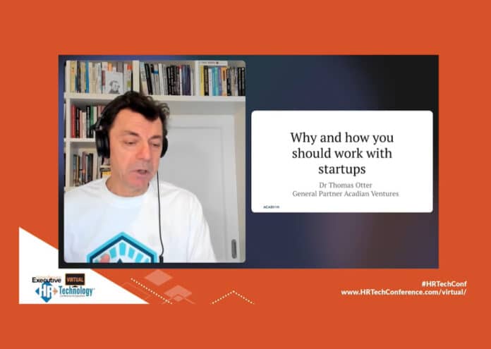 “Your existing enterprise HR vendors are innovating, but it’s genuinely incremental innovation. Your core vendors will not be able to keep pace with the innovation that is happening in the start-up community, nor do they want to,” said Dr. Thomas Otter, general partner with HR tech venture firm Acadian Partners, during a presentation Thursday at the HR Technology Conference Virtual. (Registrants can listen to the session replay here until May 1.)