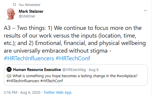 “COVID amplified the need for secure, unified and available HR service delivery regardless of location,” Stelzner wrote during the chat. “#HRTech is inextricably linked to the productivity and success of the modern enterprise.”